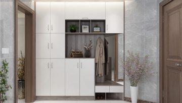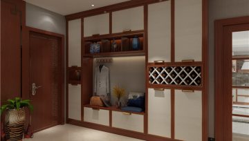 獨(dú)立式衣帽間對(duì)居住區(qū)的要求較高。只有在寬敞的大空間中設(shè)置獨(dú)立式衣帽間,才可以使其美感與實(shí)用性并存。獨(dú)立衣帽間的特點(diǎn)是防塵性好,儲(chǔ)藏空間齊全,提供充足的更衣空間,因此要求室內(nèi)照明要足夠。