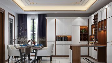 當(dāng)餐廳沒(méi)有空間做酒柜時(shí),那么可以把它設(shè)計(jì)在客廳里用來(lái)隔斷,然后再延伸出一個(gè)吧臺(tái),既能達(dá)到空間通透的效果,又特別的有情調(diào)。延伸出來(lái)的吧臺(tái),還可以加上地柜,這樣又能增加些收納空間。
