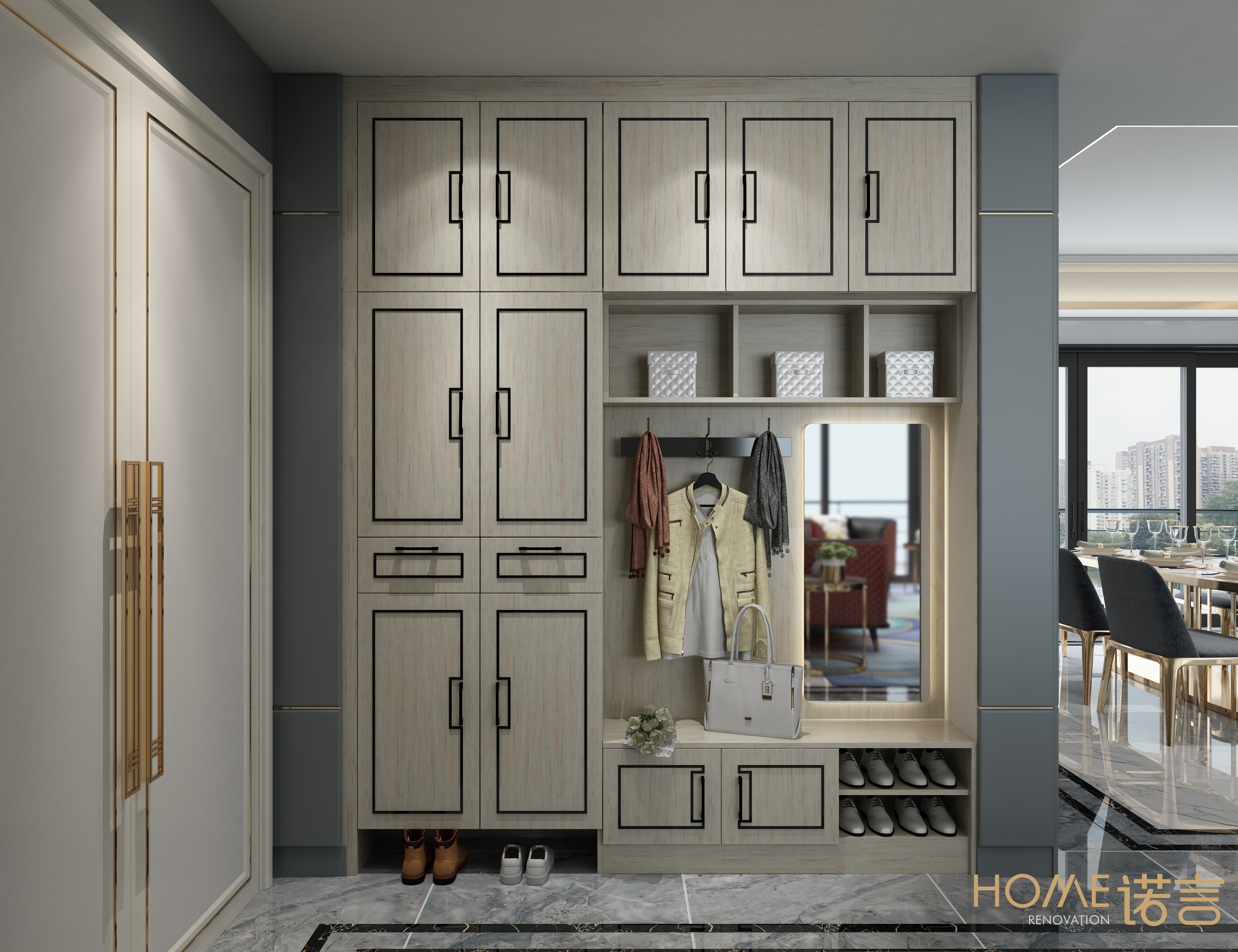 定制鞋柜,在滿足儲(chǔ)鞋功能要求的同時(shí),讓人感受到的不僅僅是一個(gè)鞋柜,更是與空間的融合,創(chuàng)造一個(gè)“沉浸式”的過(guò)渡空間,讓這個(gè)空間更“有意義”。無(wú)論是在功能上還是外觀上,它都是一個(gè)家的門(mén)面擔(dān)當(dāng)。