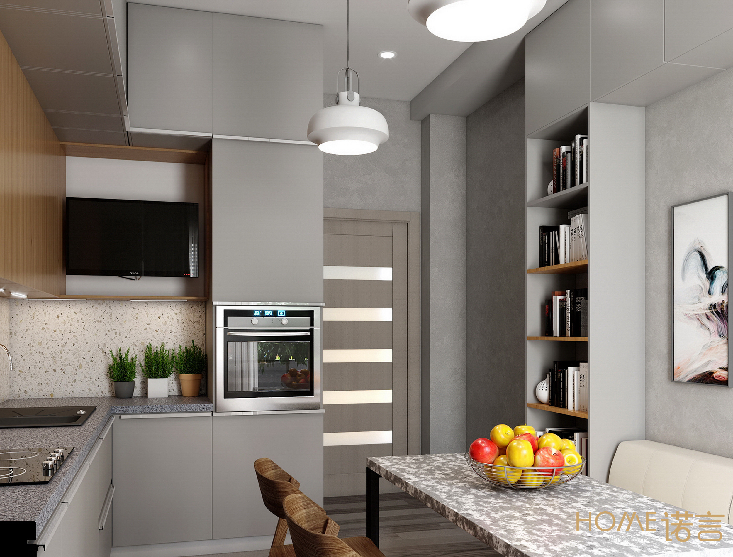 在定制柜體時(shí)僅在手邊容易觸碰到的高度設(shè)計(jì)成開放式的規(guī)格,拿取更加方便,也會(huì)減少很多家務(wù)活。